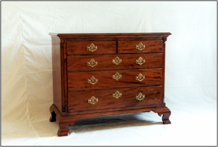 Ogee bracket feet, fluted corner columns and Chinese pierced brasses were elements of design that typified the urban tastes of Philadelphia furniture in the 18th C.